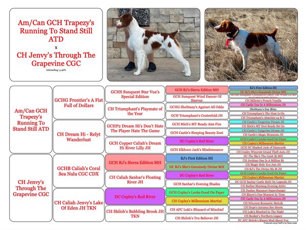 This is a breeding I have been dreaming about since both dogs were pups. The pedigree brings together the line of my girls and our wonderful Sundance, tying in DC Copley's Red River again, plus bringing in the amazing "Lilly" and "Ashton," both phenomenal dogs and producers. I can't wait to see this breeding come to fruition!